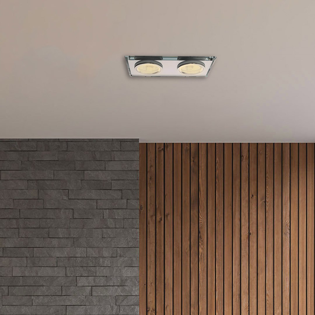 Spot încastrat sticlă pătrat, 2xGU10, argintiu
